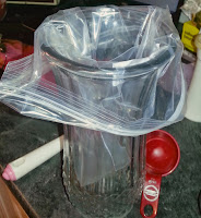 | Sauce in progress! My Mom's old kitchen; not a lot of space but we managed. |
